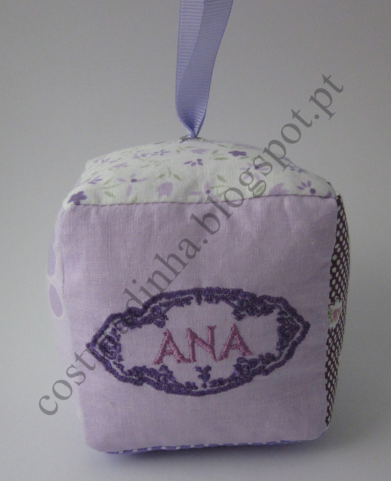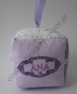 Cubo de tecido com letra bordada para decoração
