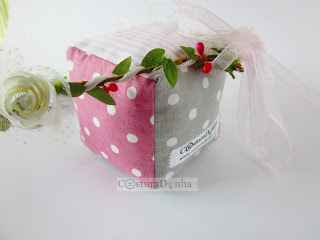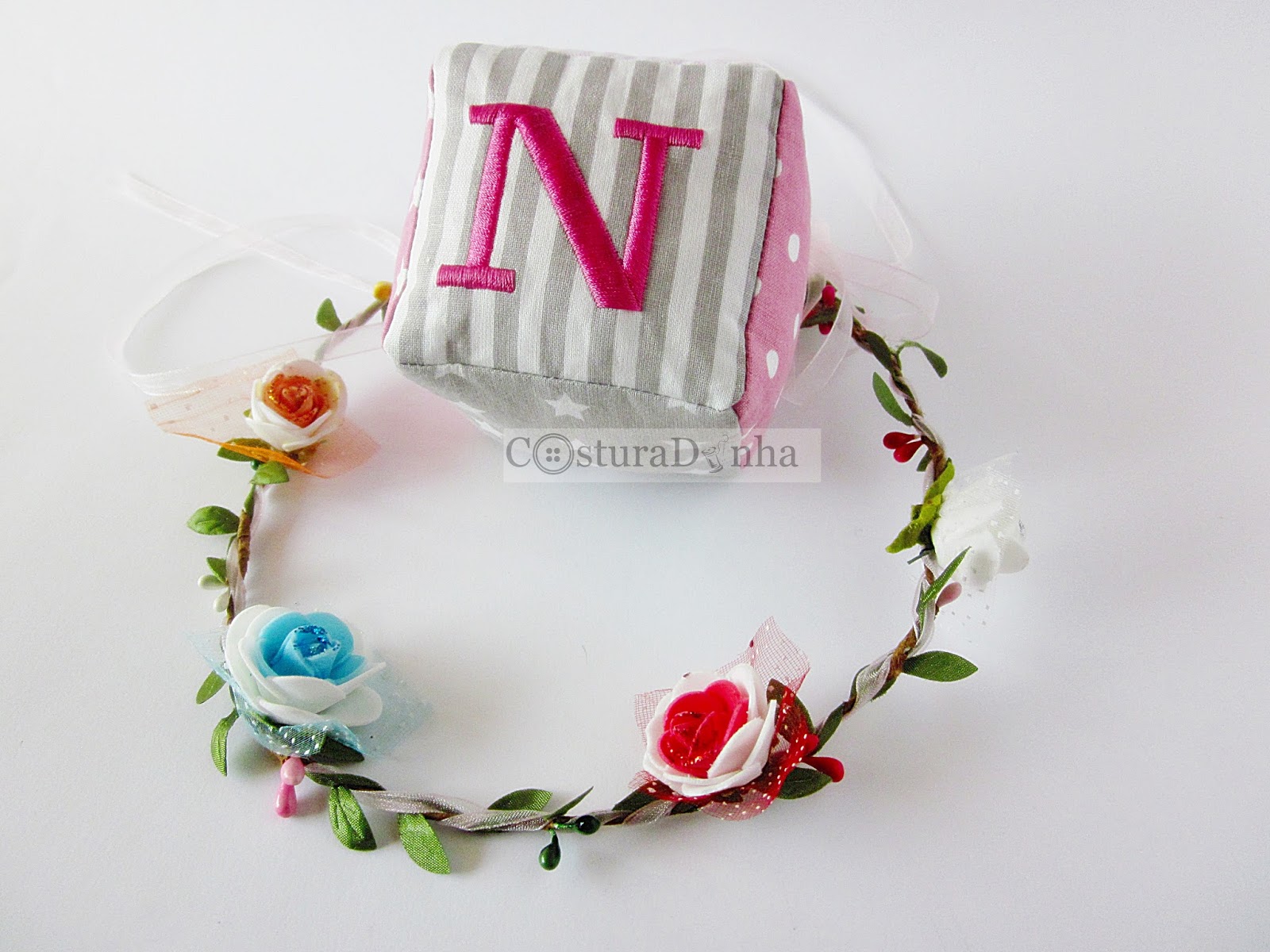Cubo de tecido com letra bordada para decoração